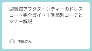 知識 迎賓館アフタヌーンティーのドレスコード完全ガイド|季節別コーデとマナー解説 迎賓館のアフタヌーンティーは、非日常の優雅な時間を味わえる特別な体験です。ただし、その格式高い雰囲気にふさわしいドレスコードやマナーを知らずに訪れると、少し不安に感じる方も多いのではないでしょうか。本記事では、迎賓館アフタヌーンティーの服装... 知識