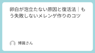 料理 卵白が泡立たない原因と復活法|もう失敗しないメレンゲ作りのコツ お菓子づくりで「卵白が泡立たない」と悩んだことはありませんか。ふわふわのシフォンケーキやマカロンを作るには欠かせないメレンゲですが、卵白が思うように泡立たないと、せっかくの努力が台無しになってしまいます。実は、泡立たない原因の多くは「ちょっ... 料理
