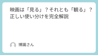 知識 映画は「見る」?それとも「観る」?正しい使い分けを完全解説 映画を「みる」と書くとき、あなたは「見る」と「観る」どちらを選びますか?日常で何気なく使っている言葉ですが、実はこの二つには明確な違いがあります。「見る」は目で捉える一般的な行為を指し、「観る」は心を込めて鑑賞するという意味を持つ言葉です。... 知識