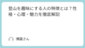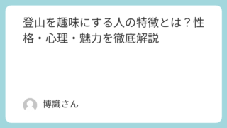 知識 登山を趣味にする人の特徴とは?性格・心理・魅力を徹底解説 「登山を趣味にしている人って、どこか穏やかで芯が強い印象がある」と感じたことはありませんか。実は、登山に惹かれる人には共通した性格や価値観があり、それが山の魅力に深く関わっています。本記事では、登山にハマる人の6つの性格の特徴を中心に、彼ら... 知識