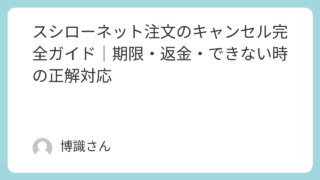 知識 スシローネット注文のキャンセル完全ガイド|期限・返金・できない時の正解対応 スシローのネット注文は便利ですが、予定変更で「キャンセルできるのか」「お金は戻るのか」と不安になることもありますよね。実は、スシローネット注文のキャンセル可否は、注文方法や支払い方法よりも「調理が始まっているかどうか」が最大の判断基準になり... 知識