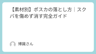 生活 【素材別】ポスカの落とし方|スクバを傷めず消す完全ガイド スクバにポスカで描いたけれど、やっぱり消したいと悩んでいませんか。ポスカは乾くと耐水性が強くなり、素材によっては簡単に落ちません。しかし、合皮なのか布なのかを見極めて正しい順番で対処すれば、ダメージを最小限に抑えることは可能です。この記事で... 生活