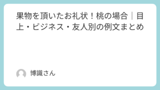 社会 果物を頂いたお礼状!桃の場合|目上・ビジネス・友人別の例文まとめ 果物を頂いたお礼状で桃について書こうとすると、意外と手が止まってしまいますよね。「電話だけで大丈夫なのか」「どんな表現を使えば失礼にならないのか」と迷う方も多いはずです。この記事では、桃を頂いた際のお礼状の基本マナーから、目上の方・ビジネス... 社会