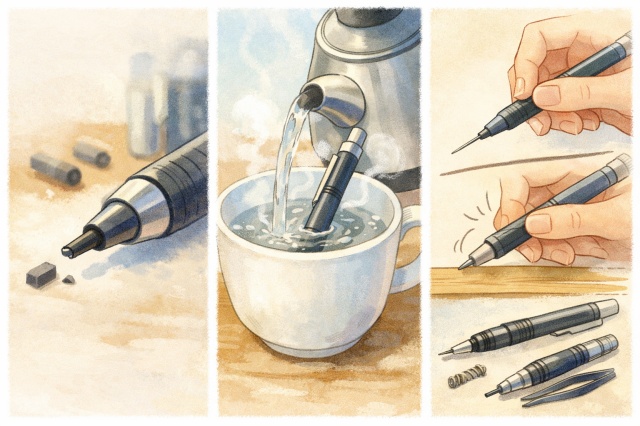 この記事では、お湯を使った安全な直し方をはじめ、針やピンセットでの応用テクニック、エアダスターの使い方など、芯詰まりをスッキリ解消する方法を詳しく紹介します。