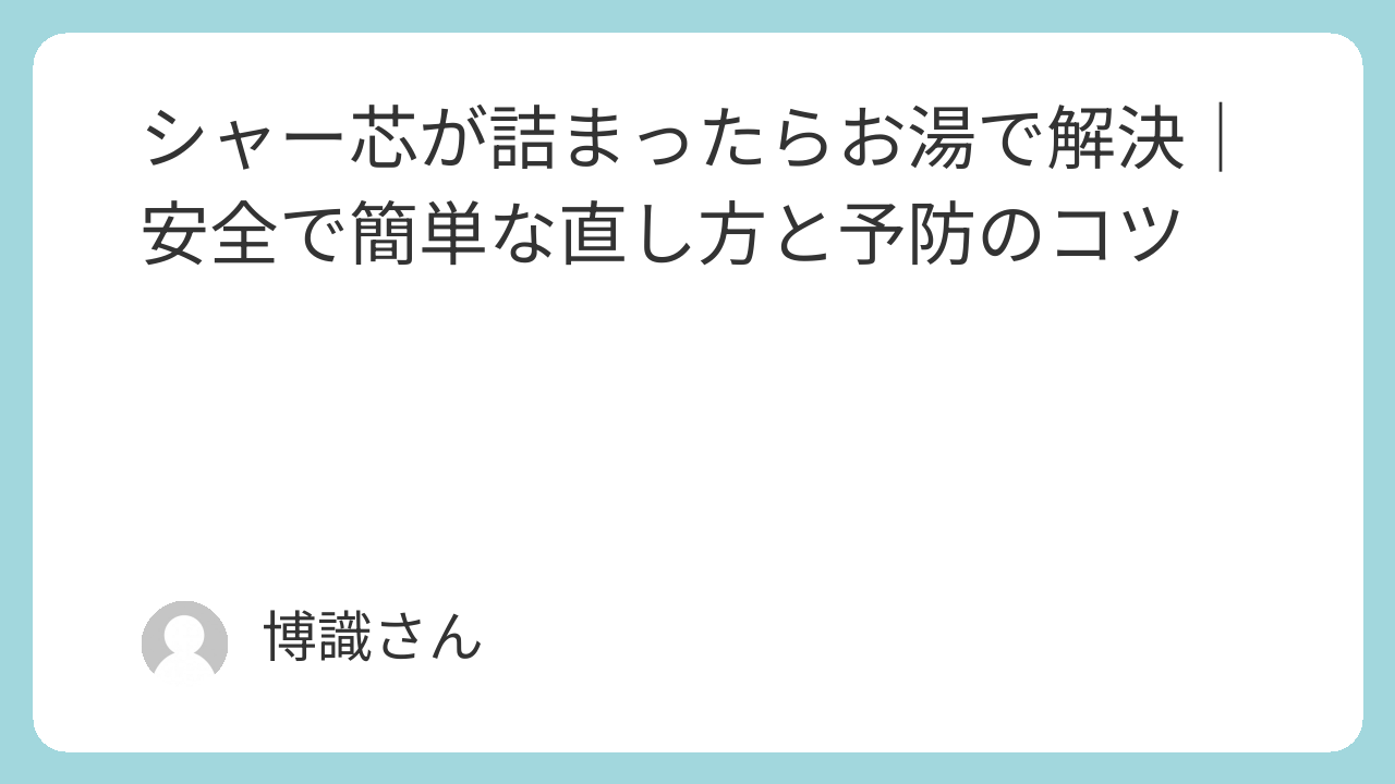 ここまで、シャー芯が詰まったときの原因から、お湯を使った直し方、予防策までを紹介しました。