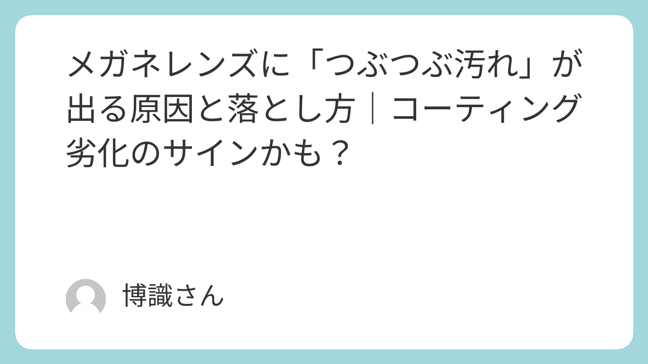 メガネレンズに現れる「つぶつぶ汚れ」や「白い粉状の汚れ」は、多くの人が経験する悩みです。