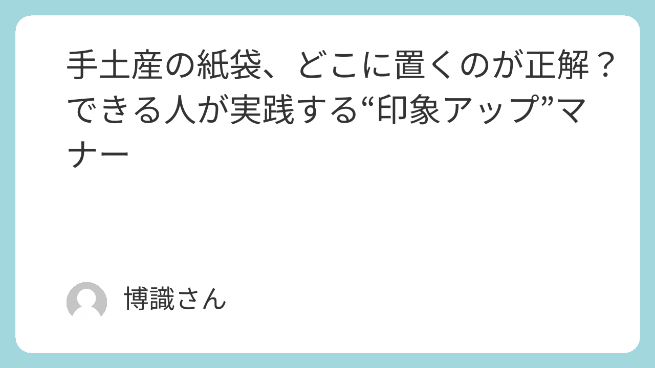 手土産の紙袋、どこに置くのが正解?できる人が実践する“印象アップ”マナー