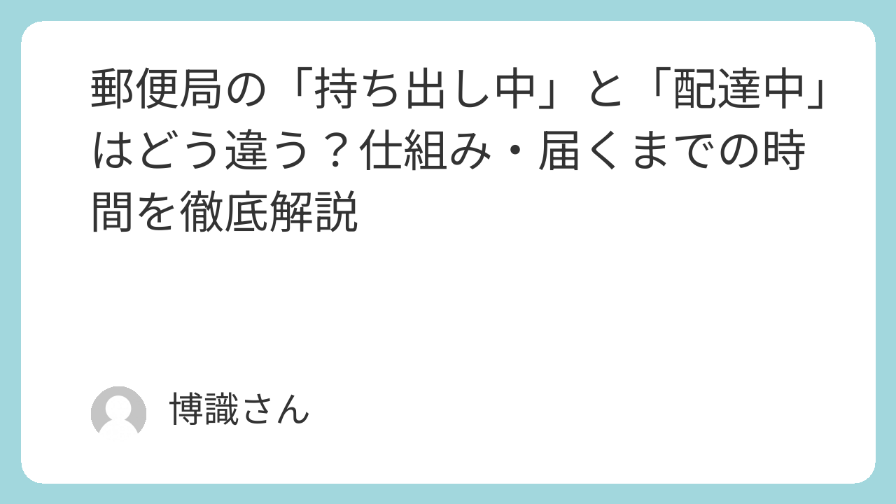 郵便局の「持ち出し中」と「配達中」はどう違う?仕組み・届くまでの時間を徹底解説