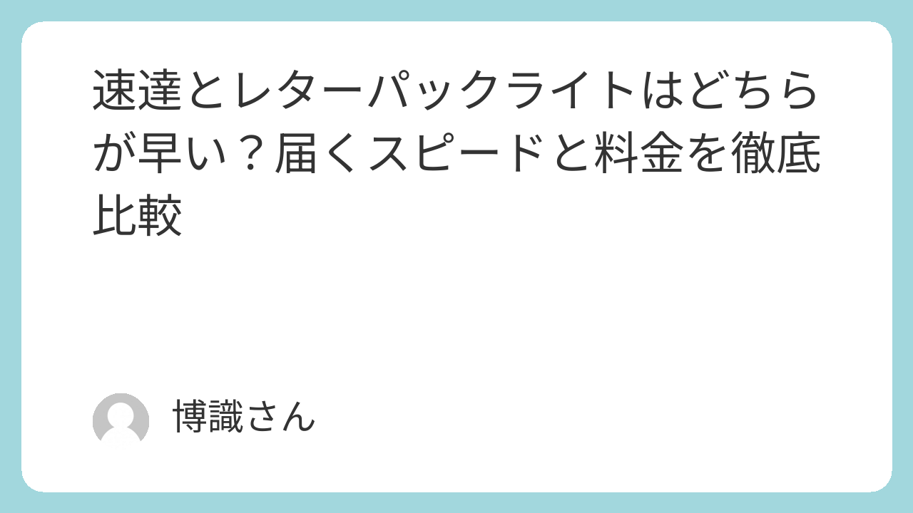 結論としては、レターパックライトも速達もスピードはほぼ同じですが、確実に翌日に届けたい場合は速達、手軽さとコスパを重視するならレターパックライトを選ぶのが賢い選択です。