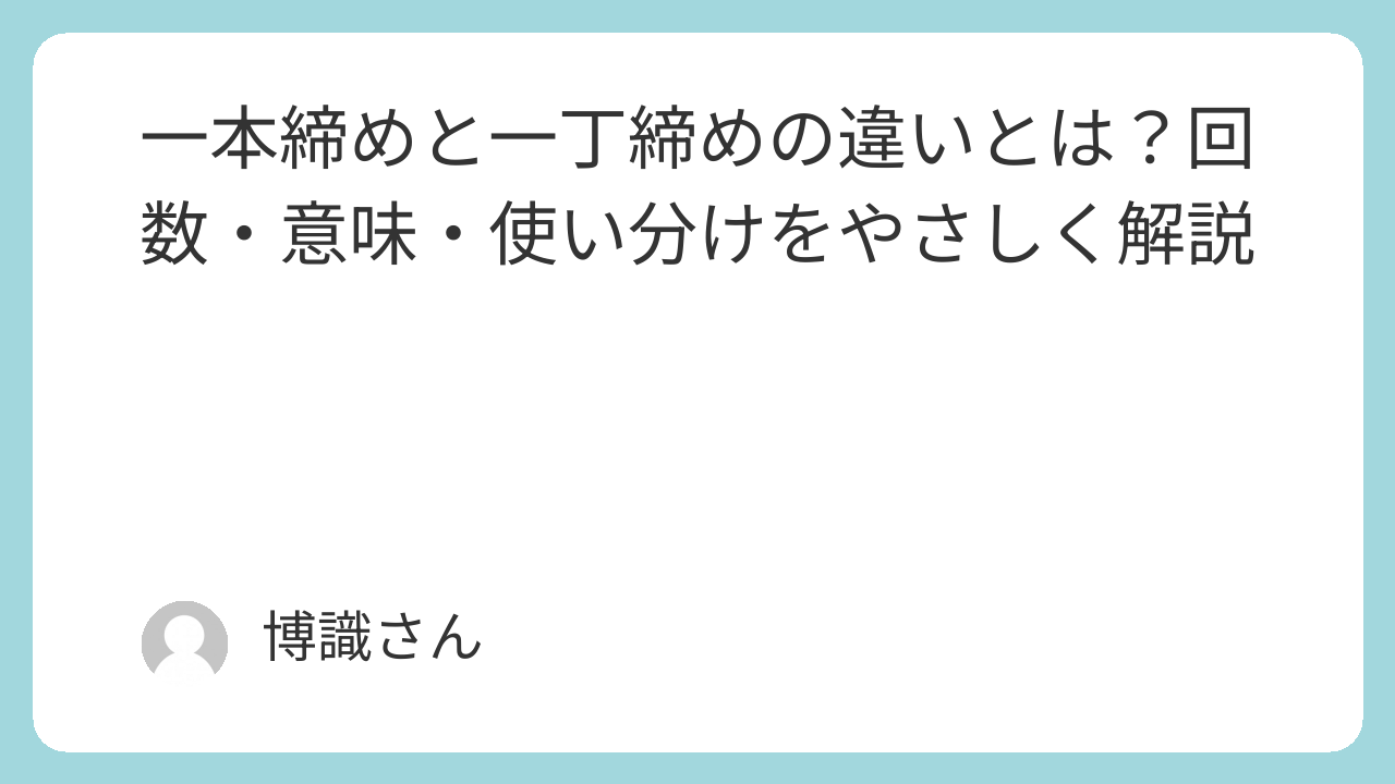 一本締めと一丁締めは、知識としては簡単に区別できるものです。