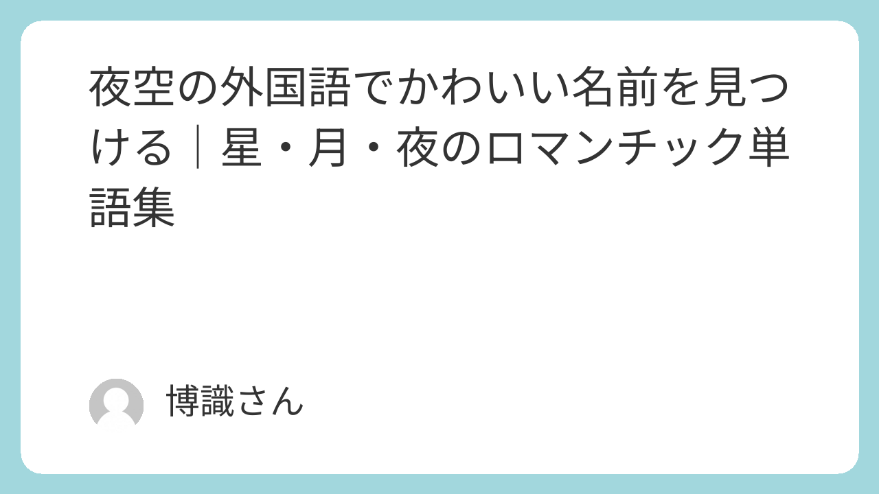 まずは「夜空そのもの」だけでなく、「星」「月」「光」など関連ワードまで広げて考えることが、かわいい外国語を見つける近道です。