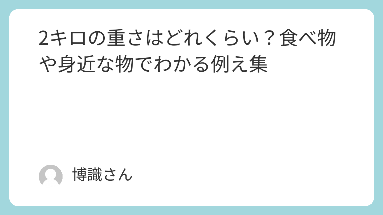 そこで本記事では、2キロを身近な食べ物や生活用品で具体的に例えてわかりやすく解説します。