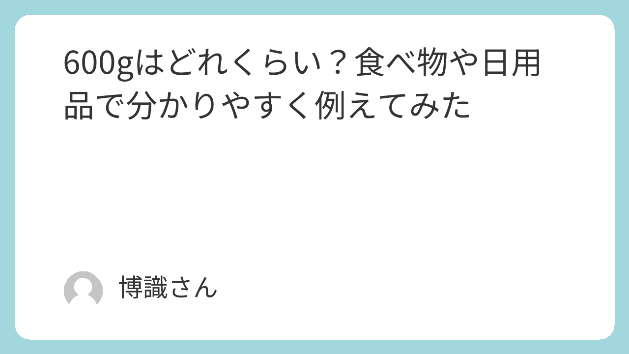 この記事では、600gの重さを食べ物や日用品に置き換えて分かりやすく解説します。
