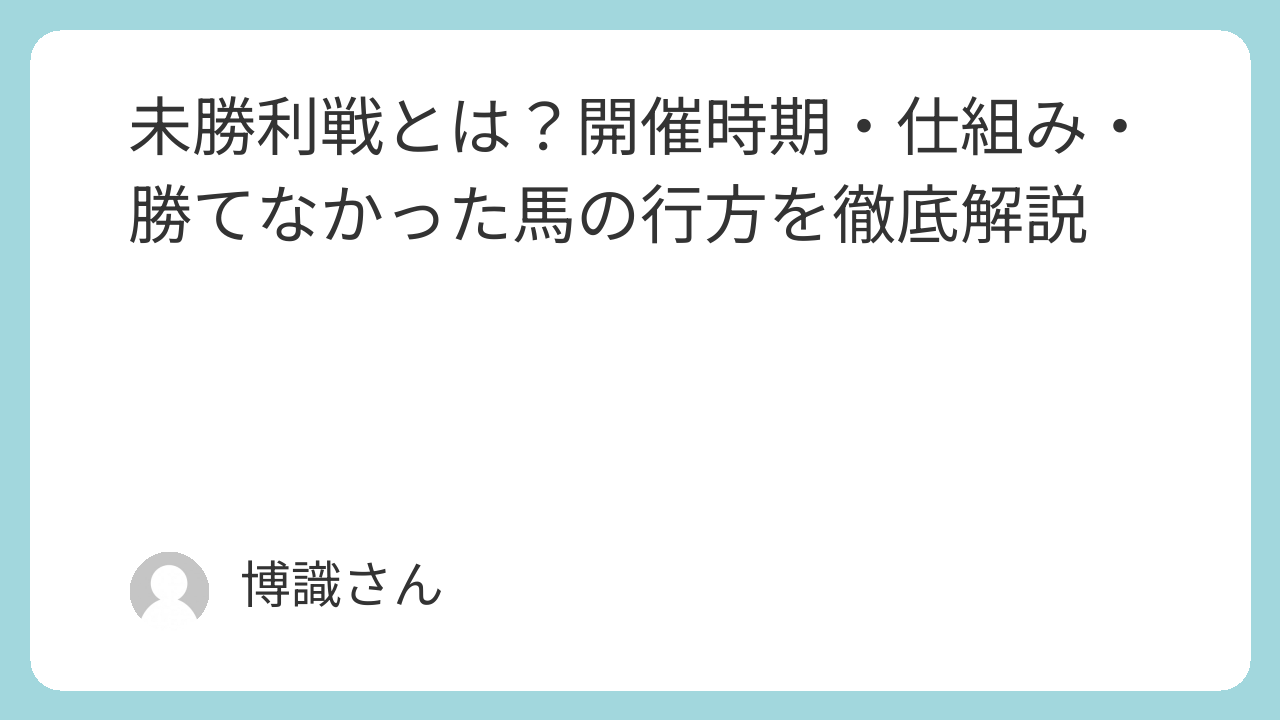 これを読めば、未勝利戦の裏にあるドラマや、競走馬たちの“人生を懸けた戦い”をより深く楽しめるようになるはずです。