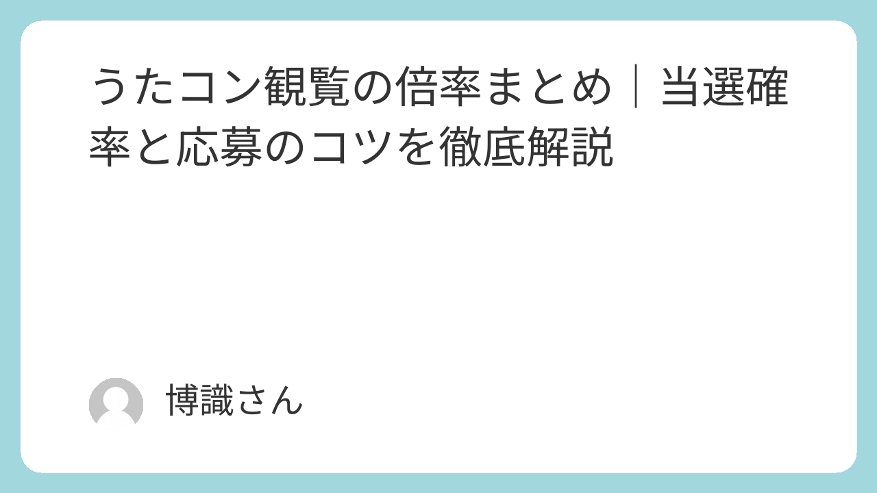 倍率の“仕組み”を理解すれば、うたコン観覧は決して運任せではありません。