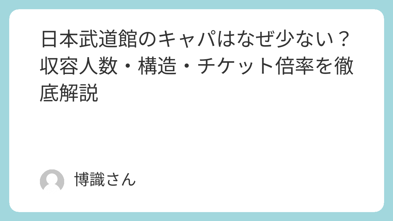 「日本武道館って、有名なのに意外とキャパが少ないよね」と感じたことはありませんか?