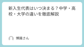 生活 新入生代表はいつ決まる?中学・高校・大学の違いを徹底解説 入学式で最も注目を集める場面のひとつが「新入生代表の挨拶」です。しかし「新入生代表はいつ決まるのか?」という疑問を持つ保護者や生徒は多いのではないでしょうか。実際には学校ごとに決定のタイミングや基準が異なり、中学校では小学校ごとの順番や性格... 生活
