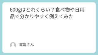 生活 600gはどれくらい?食べ物や日用品で分かりやすく例えてみた 「600g」と言われても、具体的にどのくらいかすぐにイメージするのは難しいですよね。レシピで「600gの肉を用意してください」と書かれていたり、スーパーで「この野菜は600gです」と表示されていても、ぱっと頭の中で重さが浮かばず困った経験は... 生活