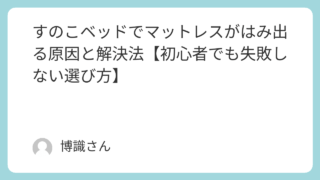 生活 すのこベッドでマットレスがはみ出る原因と解決法【初心者でも失敗しない選び方】 すのこベッドにマットレスを置いたら「なんだかはみ出してる…?」と感じたことはありませんか。見た目が不格好になるだけでなく、寝心地にも影響するこの問題は、実は多くの人が経験しています。原因は、規格サイズの違いやフレームとマットレスの寸法誤差、... 生活