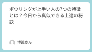 知識 ボウリングが上手い人の7つの特徴とは?今日から真似できる上達の秘訣 「あの人、なんであんなに簡単そうにストライクを取れるんだろう?」と思ったことはありませんか。ボウリングが上手い人は、スコアだけでなくフォーム・観察力・メンタルまで、全てに共通する習慣があります。この記事では、そんな上級者に共通する7つの特徴... 知識