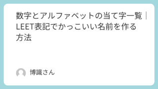 知識 数字とアルファベットの当て字一覧|LEET表記でかっこいい名前を作る方法 ネットやゲームの世界でよく見る「A=4」「E=3」といった表記、実は意味のある文化だと知っていましたか。これは「LEET(リート)表記」と呼ばれる、数字や記号を使ってアルファベットを置き換えるスタイルです。もともとハッカー文化から生まれ、現... 知識