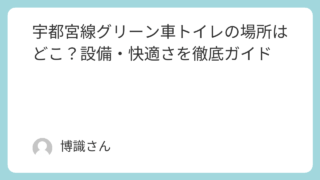 知識 宇都宮線グリーン車トイレの場所はどこ?設備・快適さを徹底ガイド 宇都宮線のグリーン車を利用する際に気になるのが、「トイレはどこにあるの?」という点ではないでしょうか。JR東日本の公式情報によると、宇都宮線のグリーン車(E231系・E233系)には4号車階下部分に車椅子対応の多機能トイレが設置されています... 知識