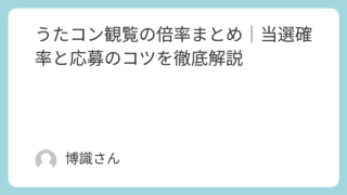 知識 うたコン観覧の倍率まとめ|当選確率と応募のコツを徹底解説 NHKの人気音楽番組『うたコン』の観覧に応募したいけれど、「倍率が高いって聞くけど本当?」「どうすれば当たりやすいの?」と気になる人も多いですよね。この記事では、2025年最新の観覧倍率データから、当選確率を上げる応募タイミング、当日の流れ... 知識
