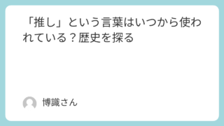 知識 「推し」という言葉はいつから使われている?歴史を探る 「推し」という言葉は、今や多くの人が当たり前のように使っていますよね。好きなアイドルやキャラクター、俳優さんなどを語るときに、とても身近な言葉になりました。でも、「推し」はいつから使われていた言葉なのか、気になったことはありませんか?実はこ... 知識