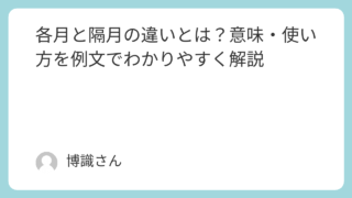 知識 各月と隔月の違いとは?意味・使い方を例文でわかりやすく解説 「各月」と「隔月」って、なんとなく似ているようで違いがわかりづらいですよね。たとえば「隔月刊行」と「各月レポート」では、どちらも「月」に関係する言葉ですが、実は伝える頻度がまったく異なります。この記事では、「各月」と「隔月」、そして「毎月」... 知識